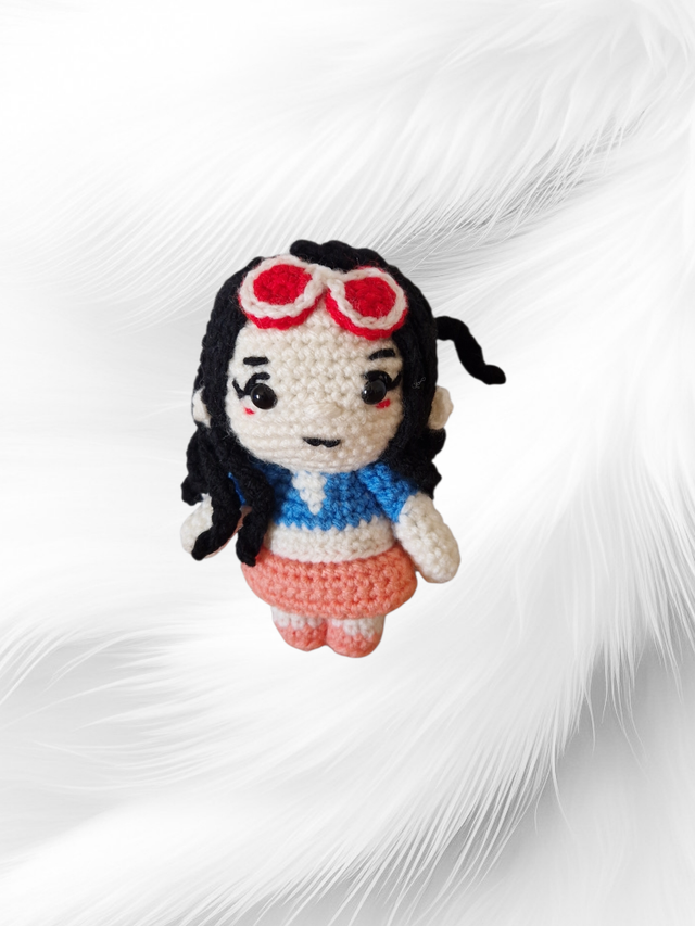 NICO ROBIN est réalisée au crochet avec une laine 100% Acrylique.